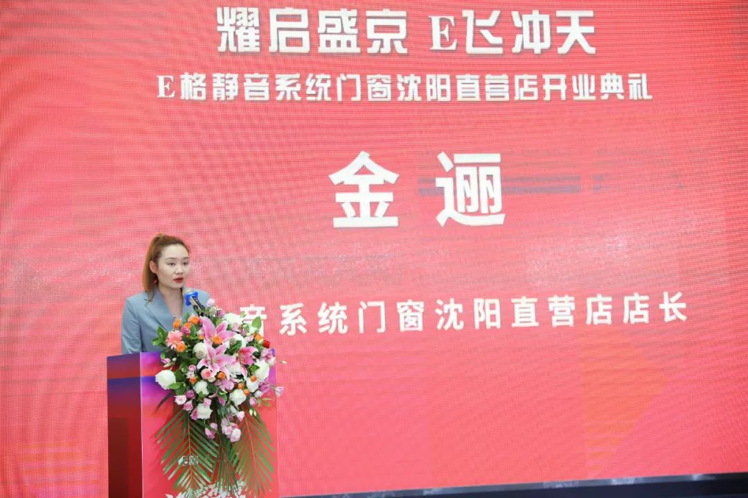 在開業(yè)盛典的最后,E格靜音系統(tǒng)門窗沈陽直營店店長金邐女士上場致辭,她表示,E格沈陽直營店將以靜音門窗市場為導(dǎo)向,以E格“超靜音、高顏值、好品質(zhì)”的產(chǎn)品為基石,為沈陽消費者打造理想家居生活的同時,也為沈陽消費者帶來切實開業(yè)福利。即日起至6月28日,E格沈陽直營店驚喜推出多重好禮,惠享不停,不容錯過!